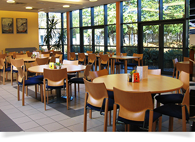 • Cafétéria "La Verrière" : 1 zone publique + 6 salons de réception privés modulables.